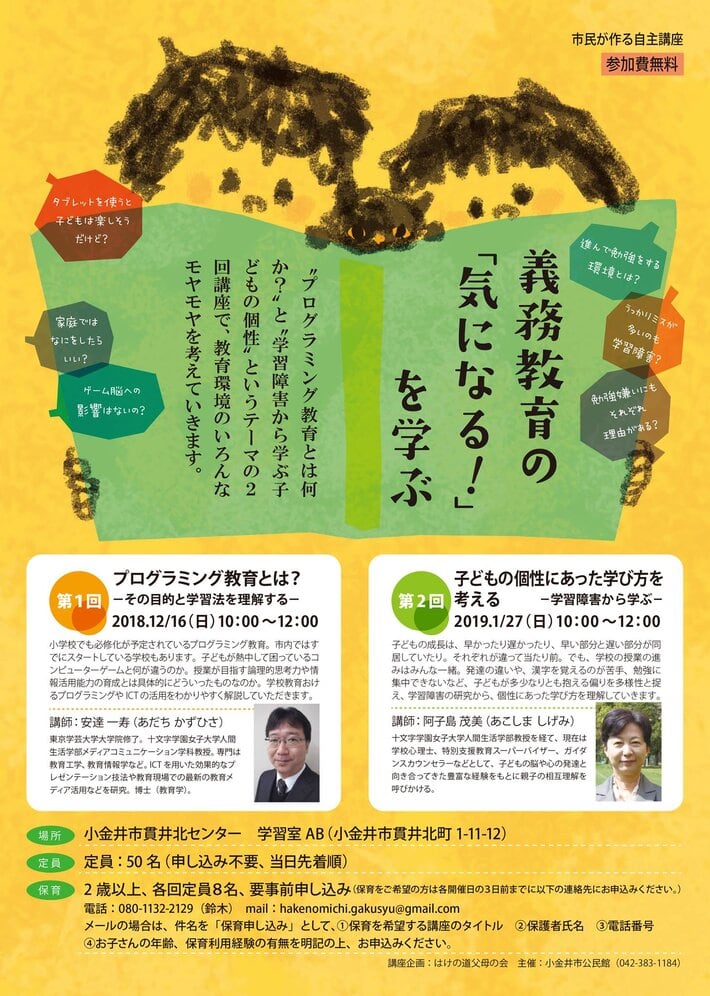 小学校でも必修化が予定されているプログラミング授業。市内ではすでにスタートしている学校もあります。子どもが熱中して困っているコンピューターゲームと何が違うのか。授業が目指す論理的思考力や情報活用能力の育成とは具体的にどういったものなのか。学校教育おけるプログラミングやICTの活用をわかりやすく解説していただきます。