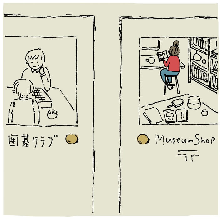 平日の午後17時、JR中央線・国立駅を降りた。「Museum shop T」はビルの3階、賑わう囲碁クラブのとなりにある。本棚に並ぶさまざまな本と、器や文房具、コーヒーにおやつも楽しめるのだ。奥の一角は展示スペース。ゆっくりと店内を眺めたあと、お店の方につぎのお店を聞いてみた。